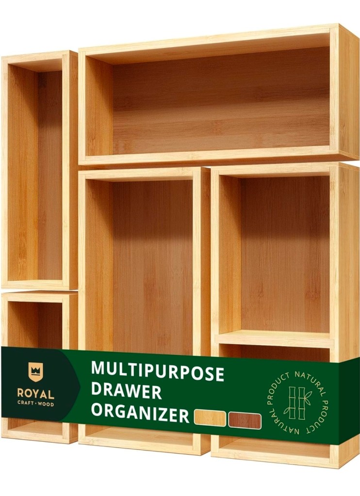 Beautiful and functional bamboo dividers for kitchen or office drawers. Popular for its sustainability and aesthetic fit with modern minimalist décor.